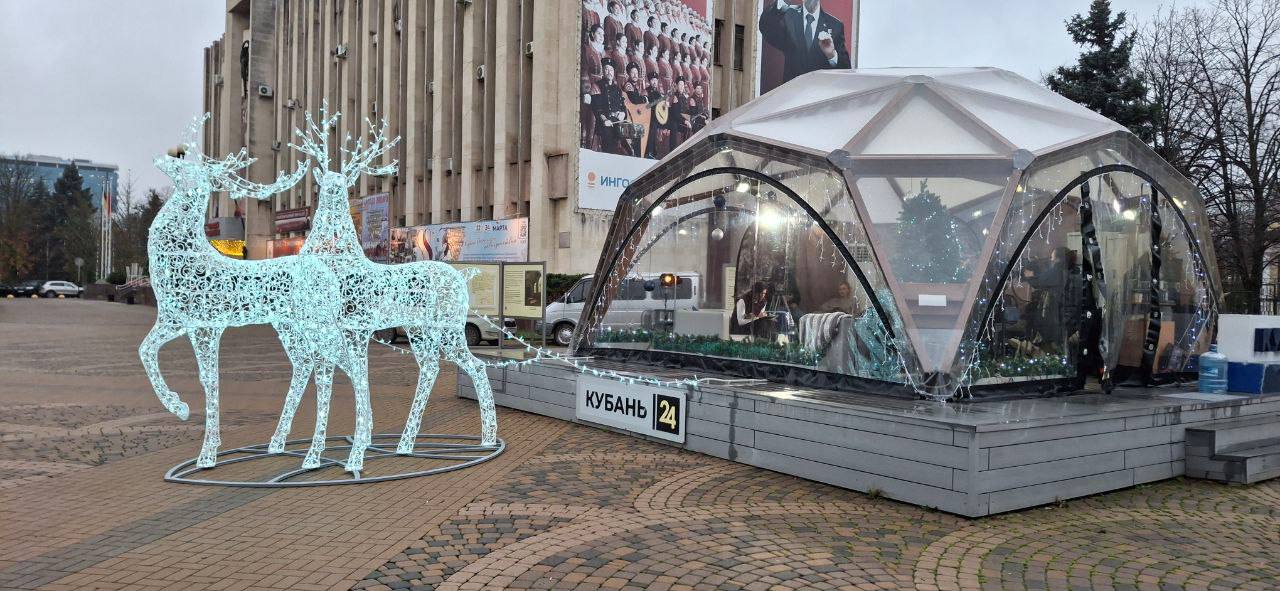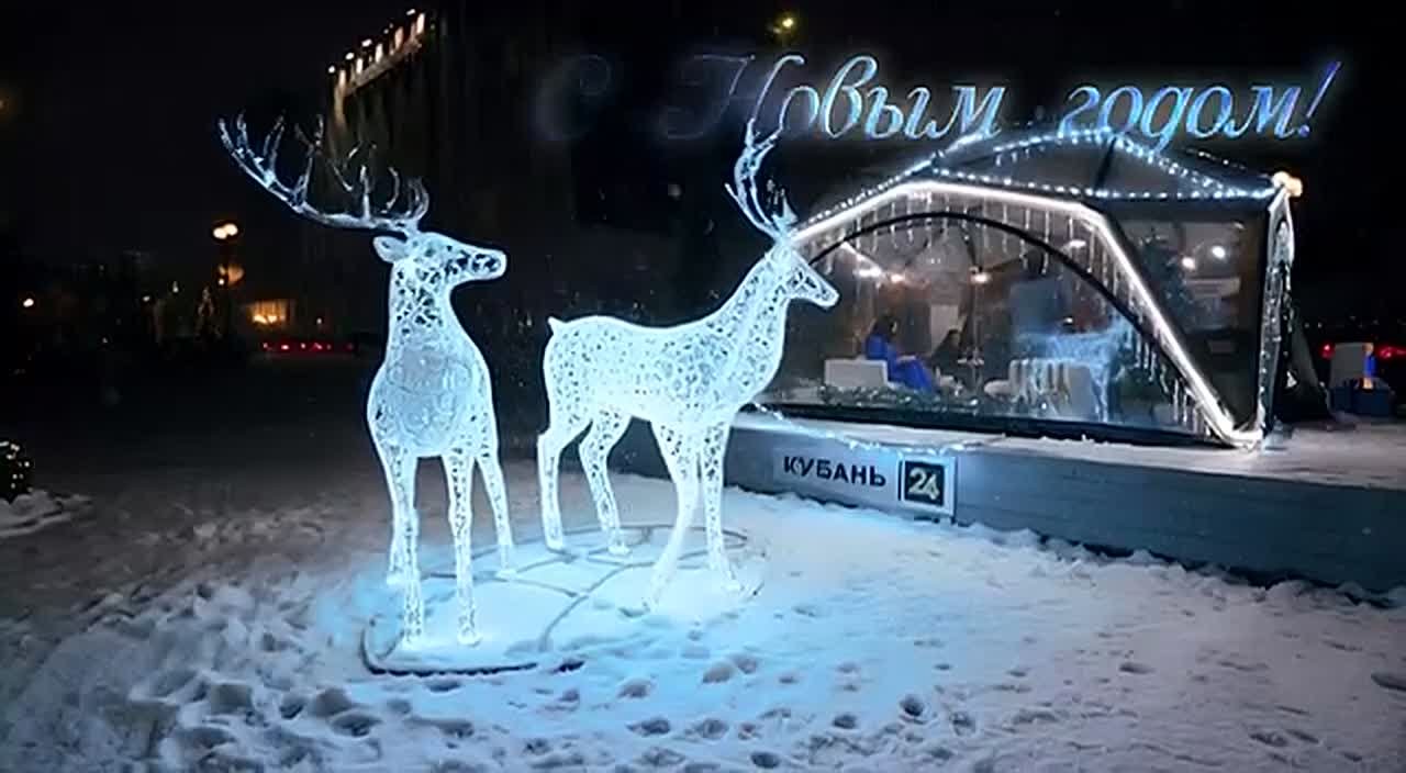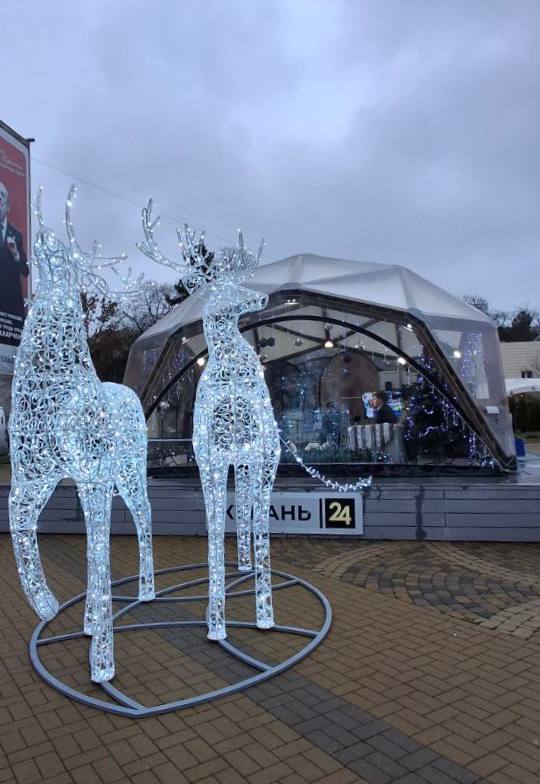 Рядом с ней на Пушкинской площади «поселились» два светящихся оленя.