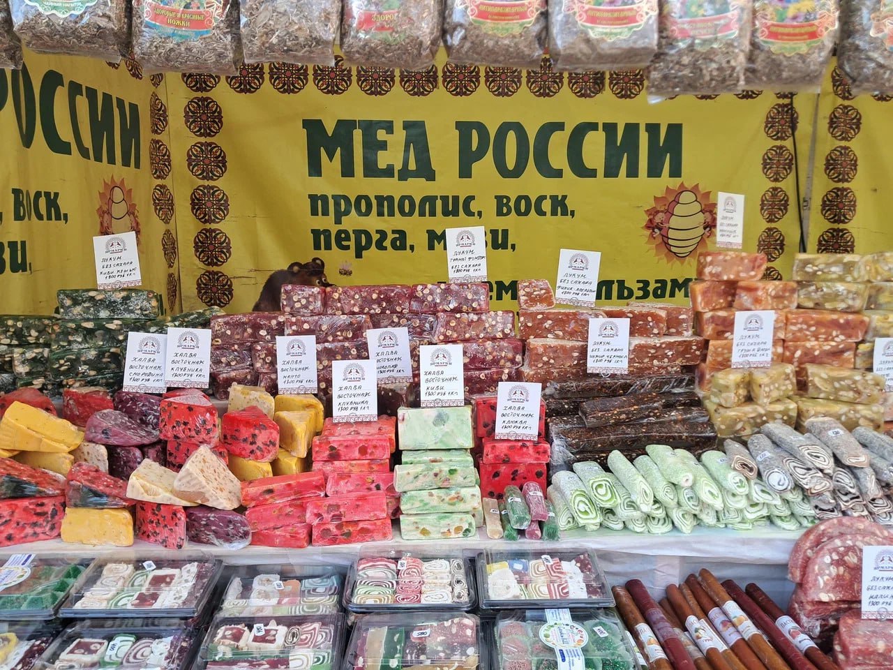 На ярмарке представлена продукция производителей из самых разных уголков России: северной Карелии, старинной Вологды, далёкого Алтая, бескрайней Сибири.