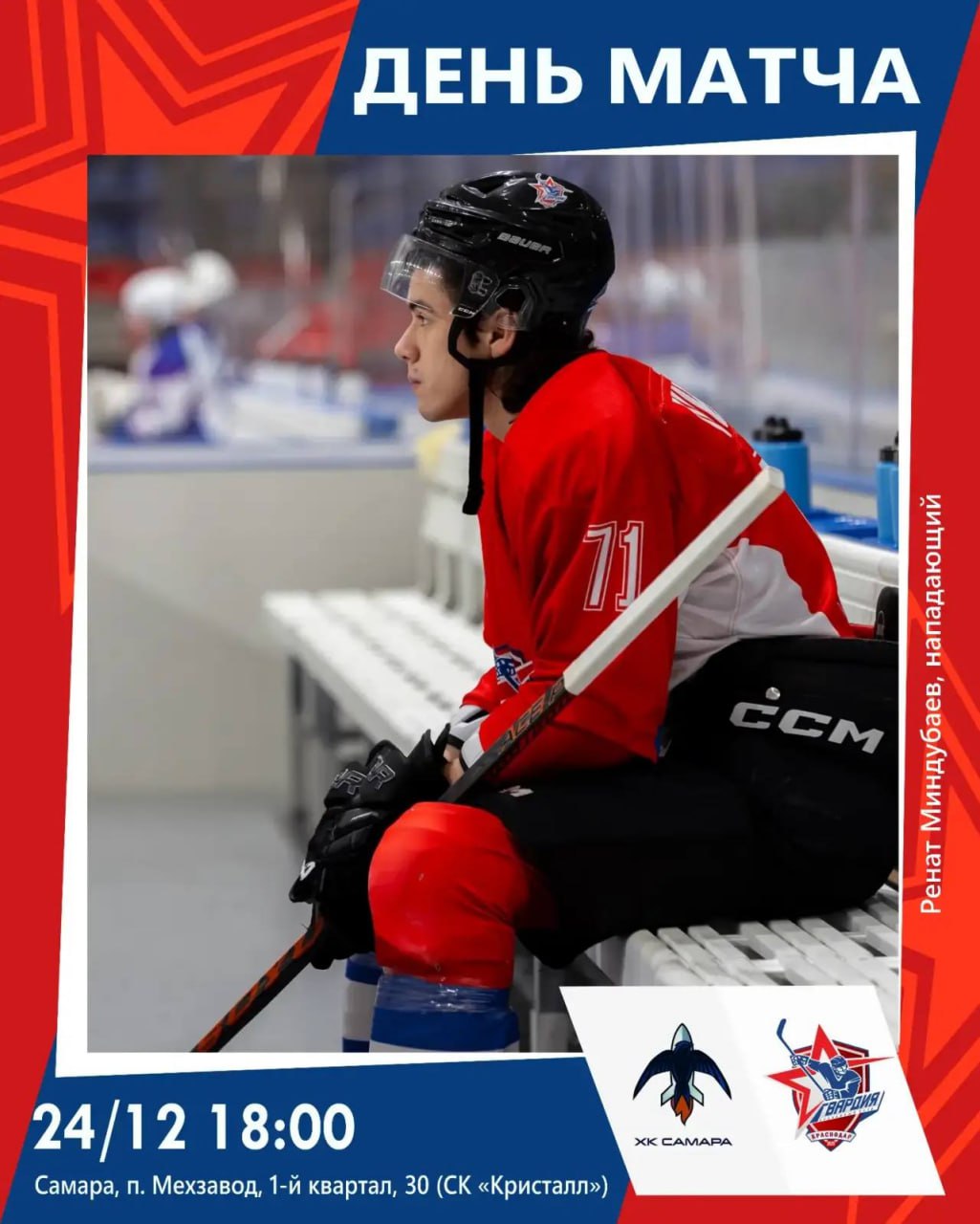 Сегодня, 24 декабря, краснодарские хоккеисты сыграют в гостях с ХК «Самара». Матч пройдет в СК «Кристалл» в 18:00.