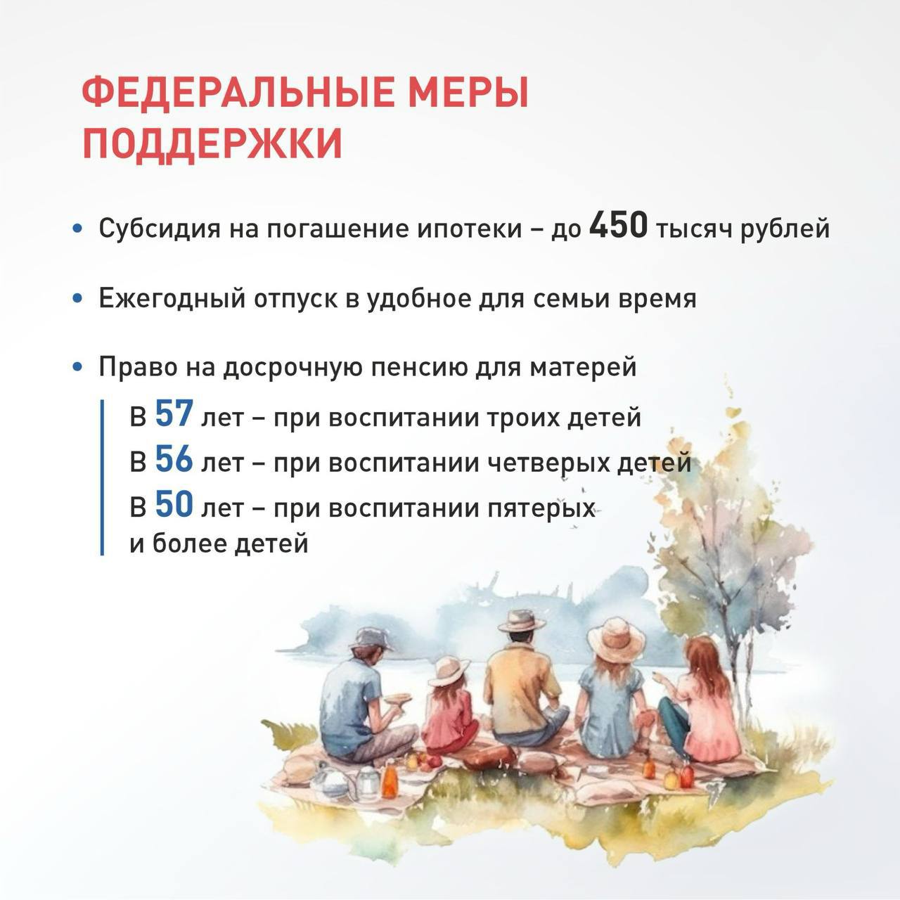 Мы стремимся к тому, чтобы число многодетных семей только росло, поэтому стараемся создавать новые преференции, субсидии и льготы. Подробная информация обо всех федеральных и краевых мерах поддержки доступна на портале «Госуслуги» и на официальном сайте министерства труда и социального развития Краснодарского края, — написал губернатор региона Вениамин Кондратьев.