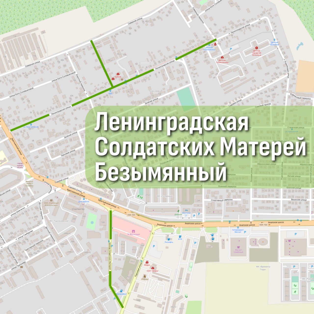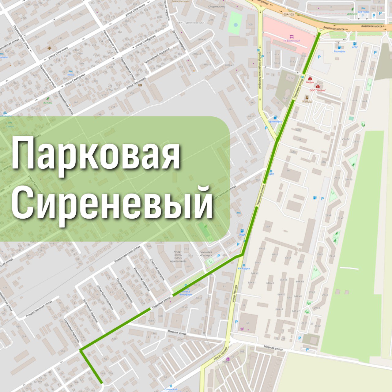 В рамках долгосрочного контракта и текущего ремонта полностью обновлено асфальтовое покрытие на улицах Парковой — от Анапского шоссе до переулка Сиреневого, Стахановской, Объездной, Северной — на участке от Симферопольского шоссе до переулка Безымянного, а также на улицах Чехова от Парковой до Объездной, Ленинградской, Мирной, в проезде Солдатских матерей, переулке Безымянном и на части переулка Сиреневого.