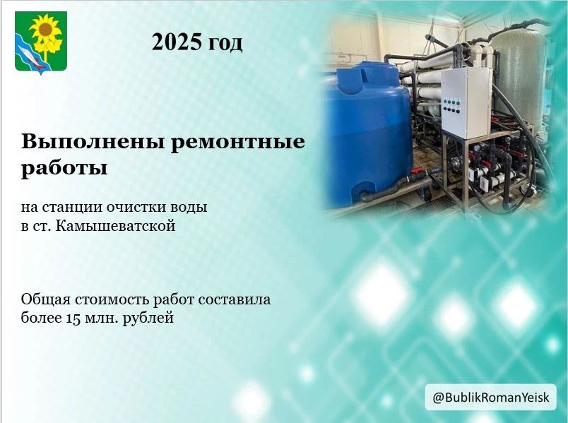 Более 222 млн рублей средств бюджетов разных уровней было направлено в 2025 году на решение вопросов улучшения качества водоснабжения населенных пунктов Ейского района.