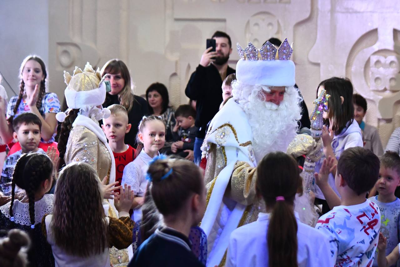 В зале детей ждали весёлые конкурсы, зажигательные танцы и встречи с любимыми сказочными героями. Сюрпризом праздника стало появление Деда Мороза и Снегурочки