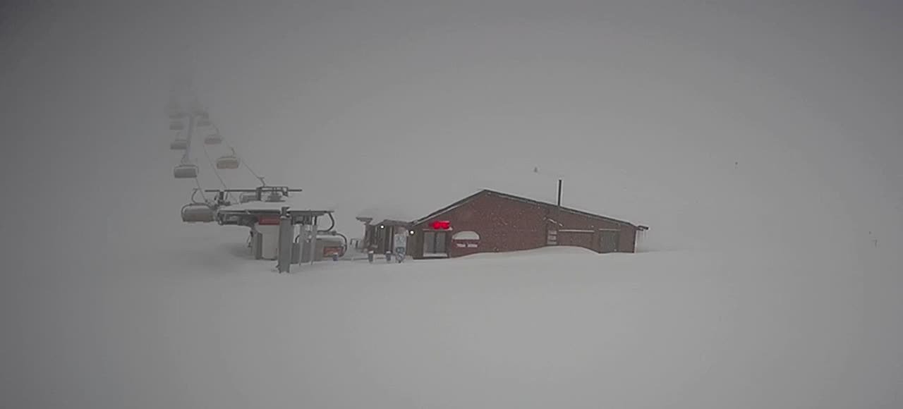 Из-за высокого риска схода лавин все трассы курортов сегодня грустно пустуют и заметаются снегом.