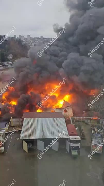 Крупный пожар бушует в Сочи. По сведениям очевидцев, огонь охватил складские помещения в микрорайоне Макаренко. Также горят офисы, автомойка, малярная мастерская, пивоварня и гостиница.