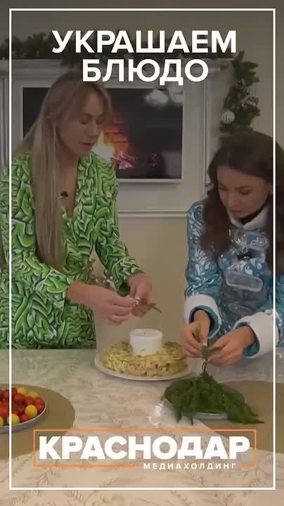 Смотрим лайфхак, как сделать из оливье новогодний венок.