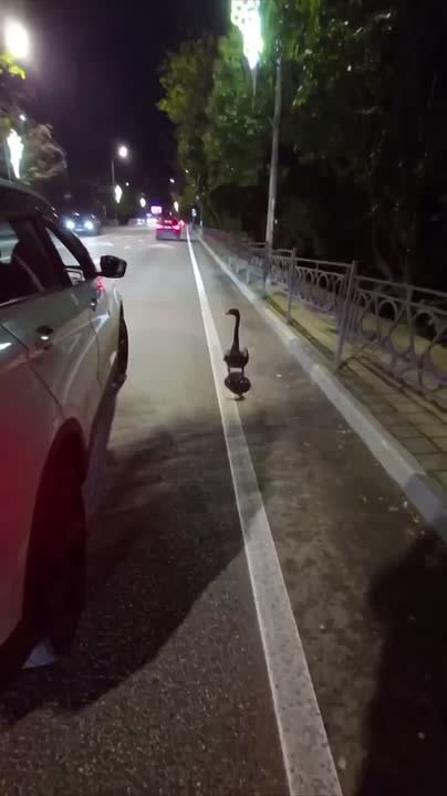 Красивый, черный, но явно не там, где надо. Жители города-курорта заметили на дороге лебедя. Люди начали обзванивать службы, искать помощь.