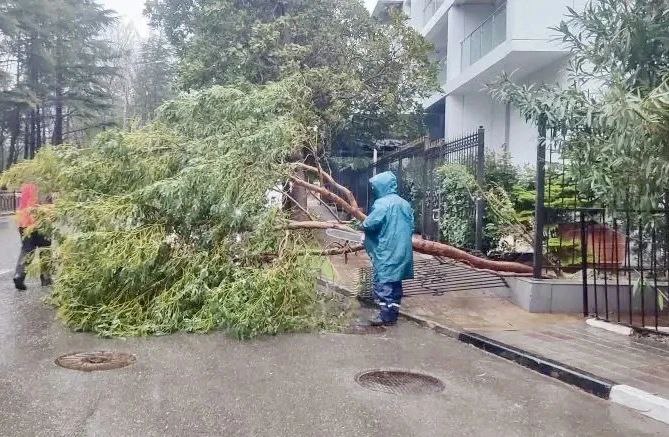 Сильный ветер и мокрый снег повалили более 50 деревьев в Сочи. К счастью, обошлось без пострадавших. В устранении последствий стихии круглосуточно участвуют сотрудники муниципальной аварийно-спасательной службы, федеральные и региональные дорожные службы, а также подрядчики районных администраций.