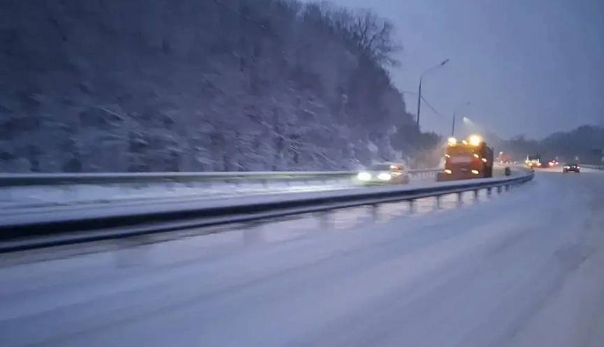 Зимняя погода в Новороссийске, несмотря на праздничную атмосферу, требует повышенных усилий от коммунальных служб. С начала дня дорожные службы ведут активную работу по уборке снега и борьбе с гололедицей.
