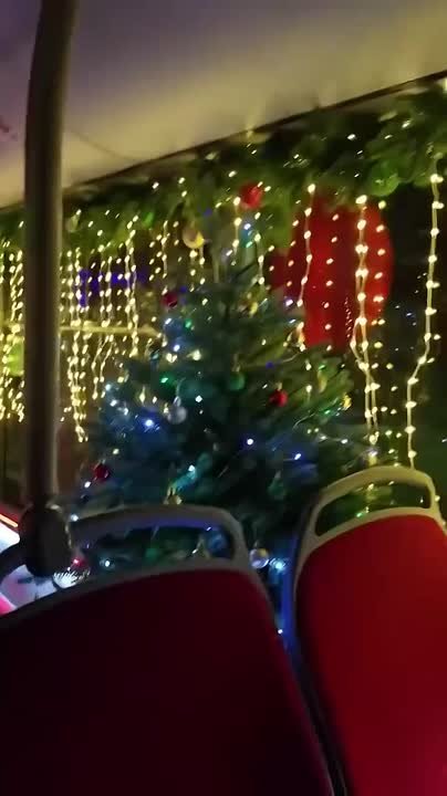 Вот такой нарядный Автобус желаний ездит по маршруту №105э — и будет радовать пассажиров до Старого Нового года.