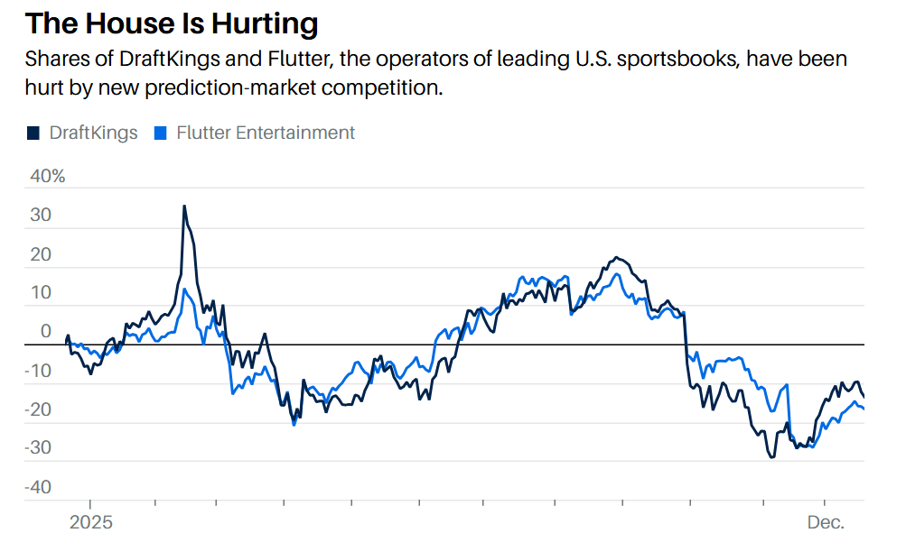Традиционные управляющие сталкиваются с глубокой проблемой. Как только приложение позволяет пользователям торговать результатами спортивного матча в выходные, а в понедельник — покупать акции, инвестиции начинают терять свой долгосрочный смысл. Vanguard и Schwab уже осознают риск утраты потока капитала: короткие ставки с бинарным исходом не предлагают ожидаемой премии за риск, что традиционные акции и облигации обеспечивают на длительном горизонте времени.