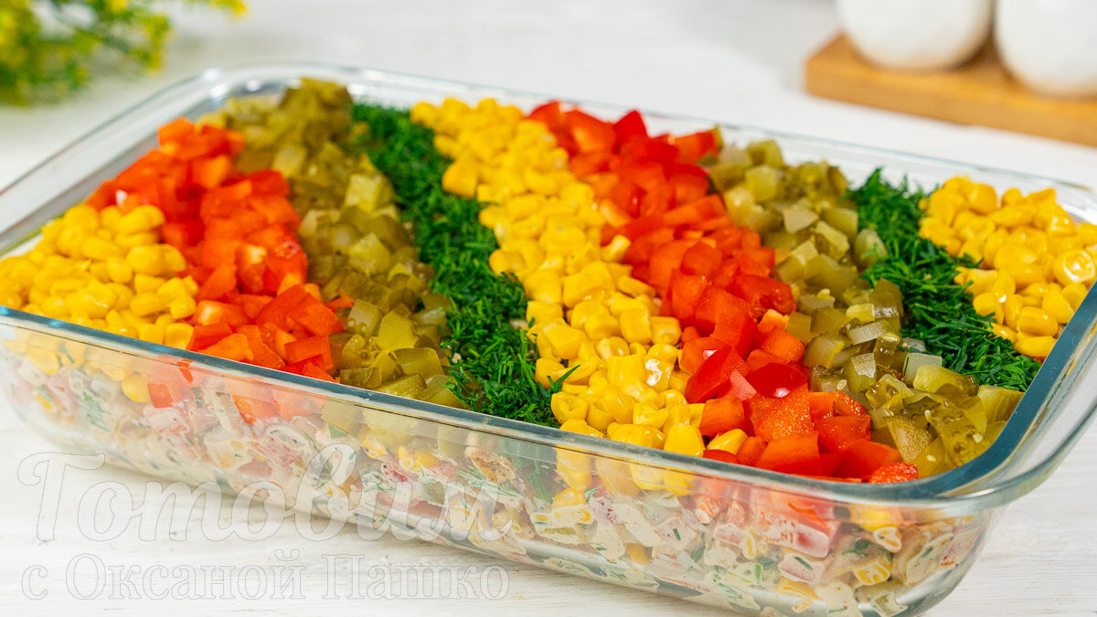 Этот удивительный салат станет настоящей изюминкой на любом праздничном столе. Он порадует всех своей яркостью и вкусом благодаря сочному куриному мясу, сладкому перцу, маринованным огурцам и нежной кукурузе. Каждый ингредиент в этом блюде гармонично дополняет друг друга, создавая уникальный вкус и атмосферу праздника, пишет канал "Готовим с Оксаной Пашко".