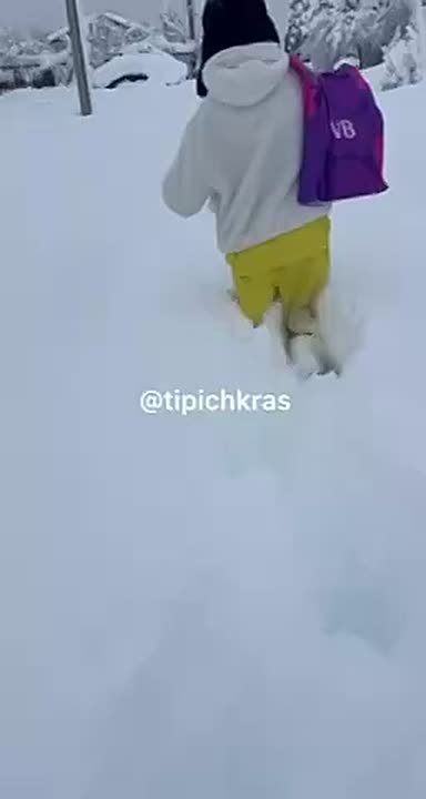 Вот такое видео сняли девушки из Белореченска, который на эти новогодние праздники слишком щедро посыпало снегом.