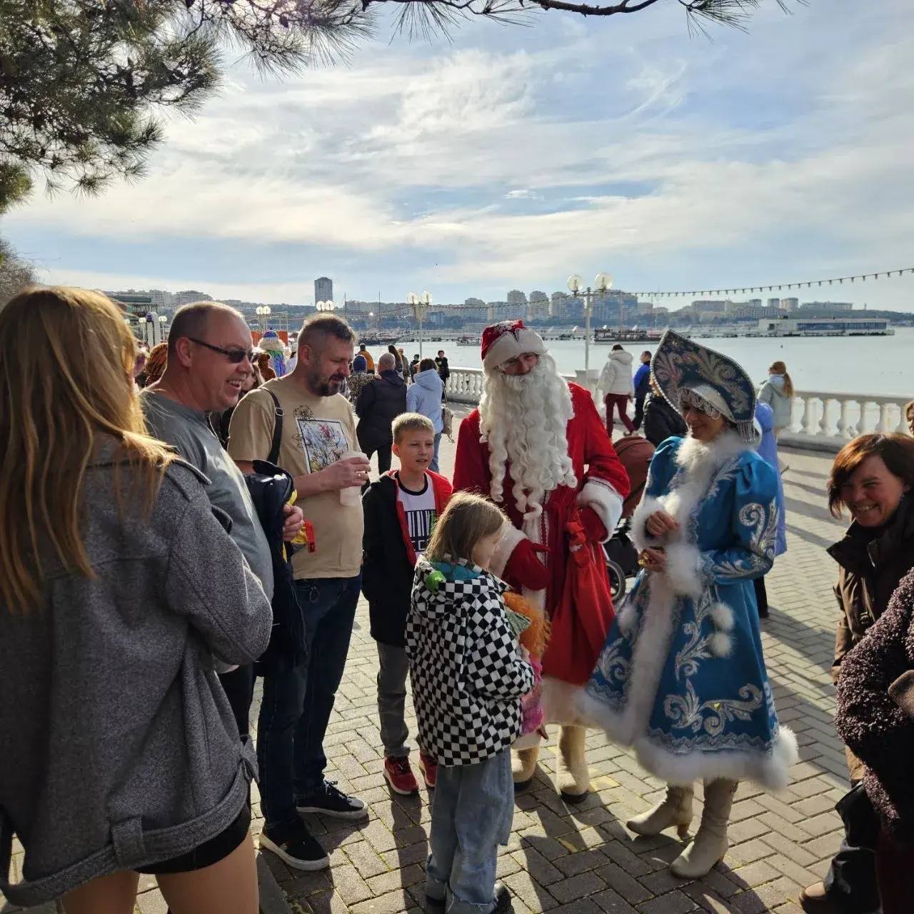 Это кто водит хороводы на набережной? Настоящий Дедушка Мороз с внучкой Снегурочкой и командой сказочных персонажей!
