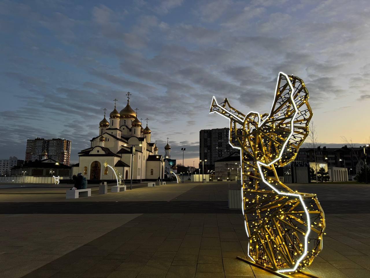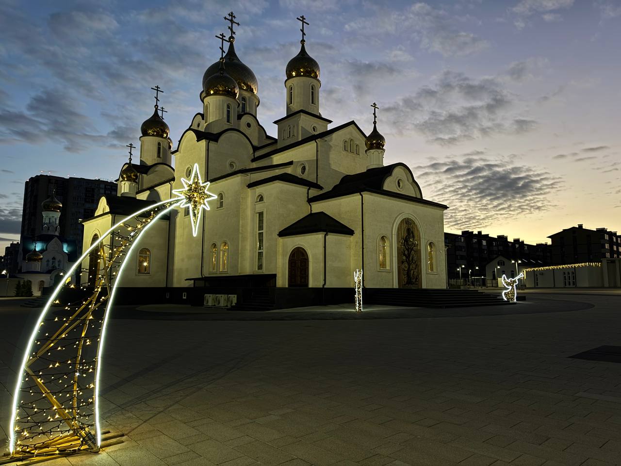 В эти дни парк стал ещё одной праздничной локацией с тематическим оформлением. Специально к новогодним и рождественским праздникам территорию украсили декоративными элементами, иллюминацией, установили световые конструкции и арт-объекты. На площади перед храмом Святого Равноапостольного князя Владимира возвышается красавица-ёлка, по сторонам ангелы и звезды, возле Тропы истории рождественский вертеп.