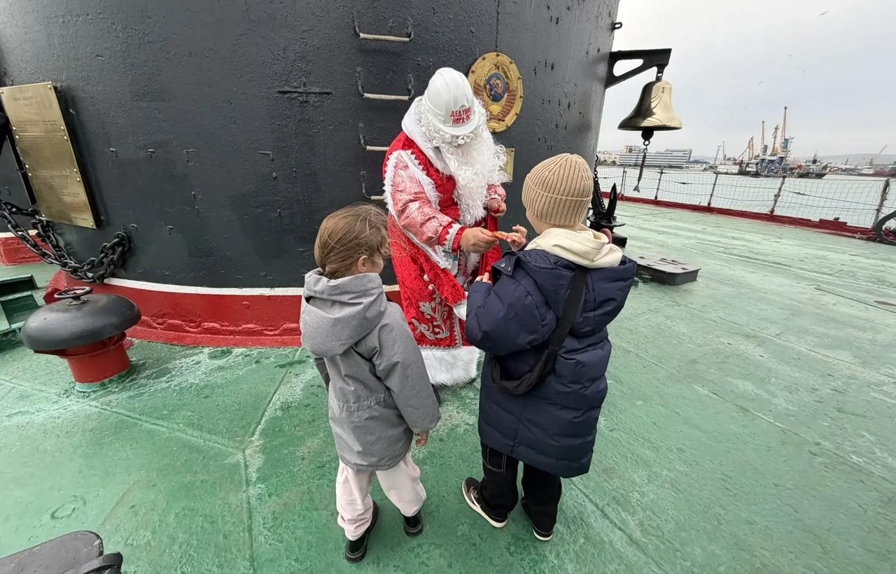 Посетителей новороссийского крейсера-музея «Михаил Кутузов» встречает Дед Норд-Ост