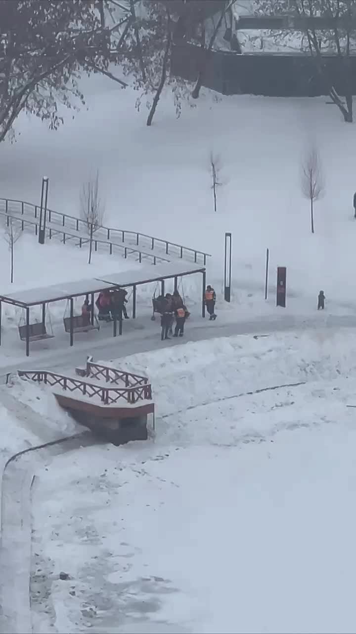 Московские коммунальщики не смогли справиться со снегом и пошли качаться на качелях.