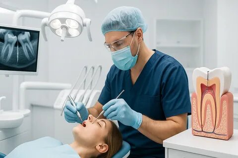 - Терапевтическое лечение: лечение кариеса, пульпита и периодонтита, а также пломбирование.