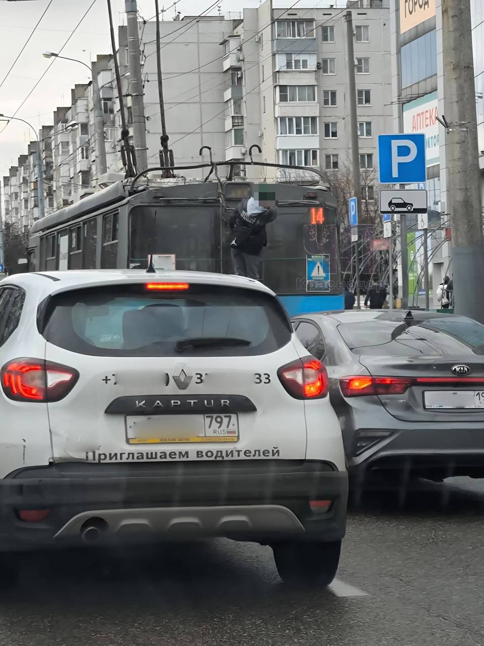 Юного зацепера заметили на улице Сормовской. Пока обычные пассажиры сидели в салоне троллейбуса, мальчик решил, что лучший вид на Комсомольский микрорайон — снаружи.