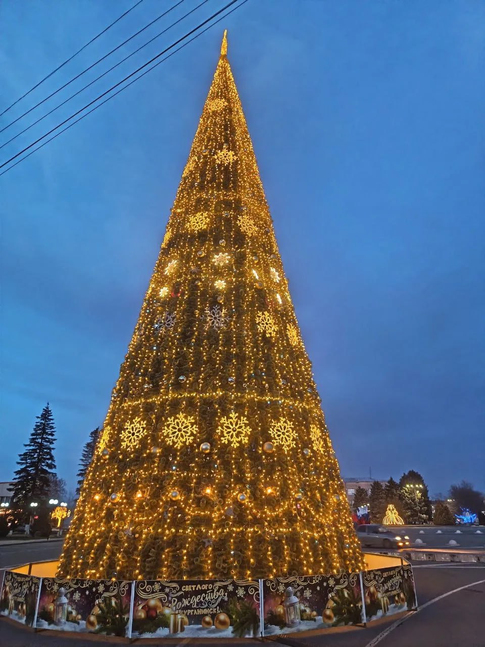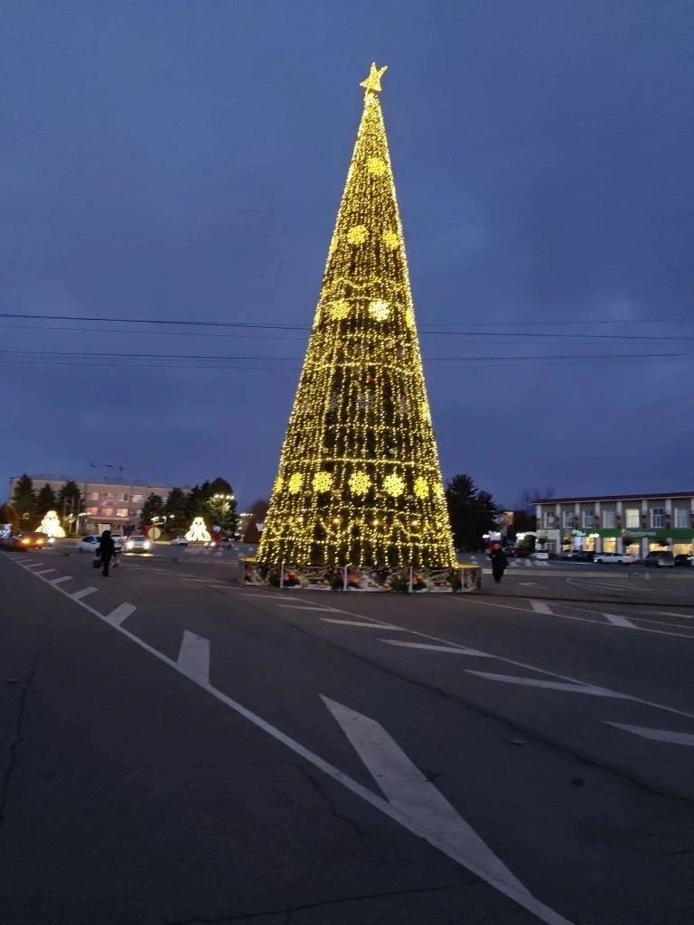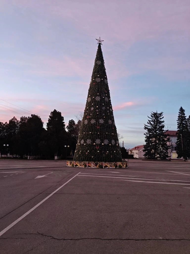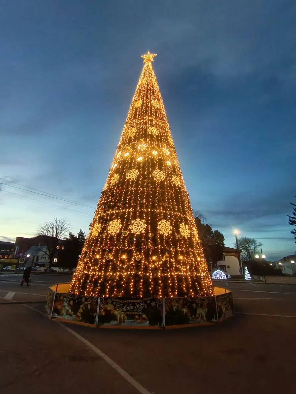 А завершаем наш марафон елок в разных городах края мы этой красавицей. Она украшает главную площадь Курганинска.