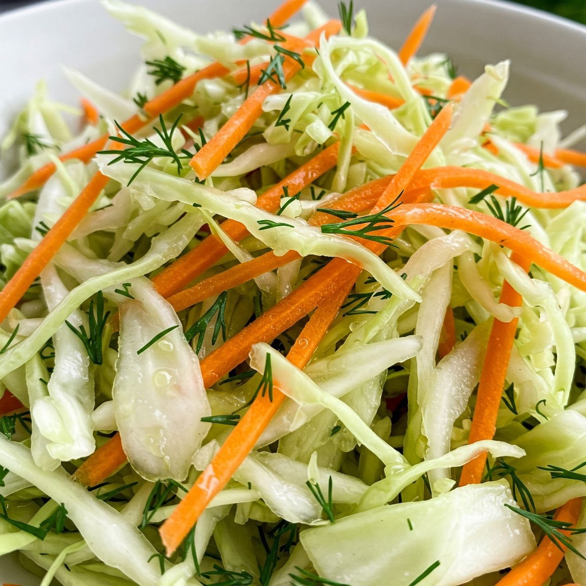 Этот капустный салат станет неотъемлемой частью вашего шашлычного меню. Он легко готовится и обладает освежающим вкусом, который прекрасно балансирует с мясом, готовым на открытом огне.