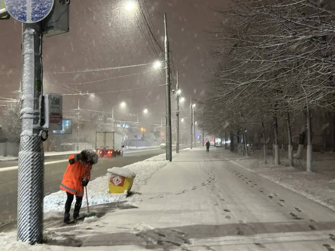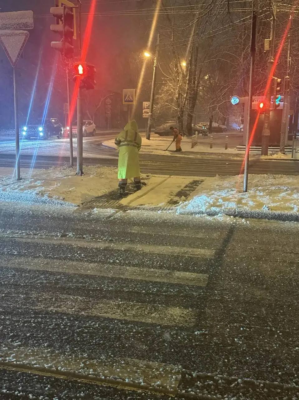 Работы начались ночью. 30 спецмашин обрабатывали мосты реагентами, израсходовав более 10 тонн песко-соляной смеси.