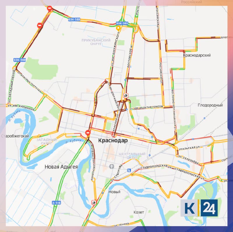 10-балльные пробки сковали под вечер заснеженный Краснодар.