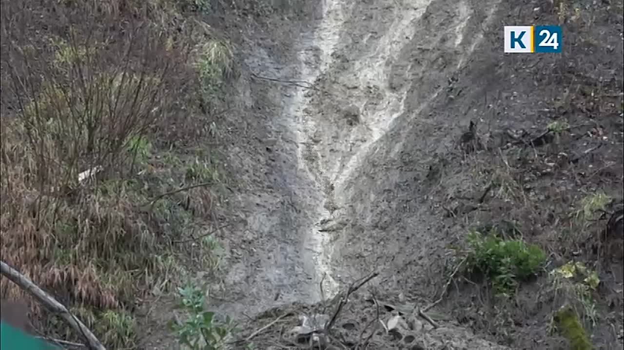 Сель сошел на участке земли, у которой есть собственник. Габионы частника не выдержали натиска грунта, и он обрушился на проезжую часть. Ситуация усугубляется тем, что дождь не прекращает идти, и весь участок в огромной луже.