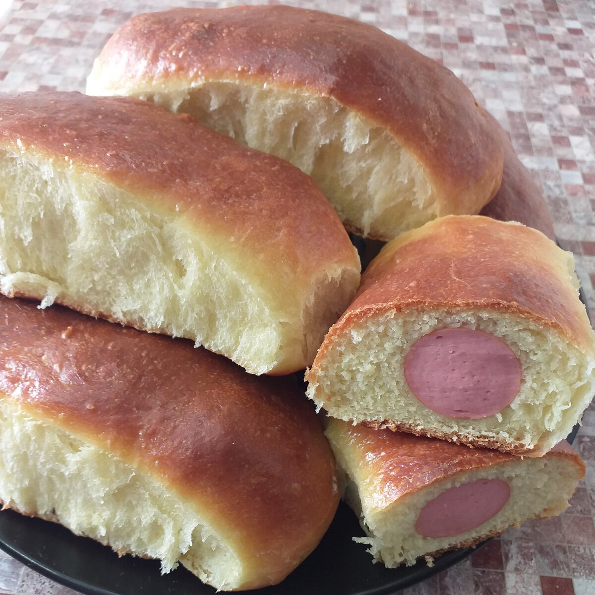3. Формирование пирожков — Готовое тесто поделите на равные части, соответствующие количеству сосисок. Каждую порцию раскатайте в круг, положите сосиску по центру и аккуратно заверните в тесто, образуя пирожок. Выложите их на противень с пергаментом и дайте подняться еще 15 минут.