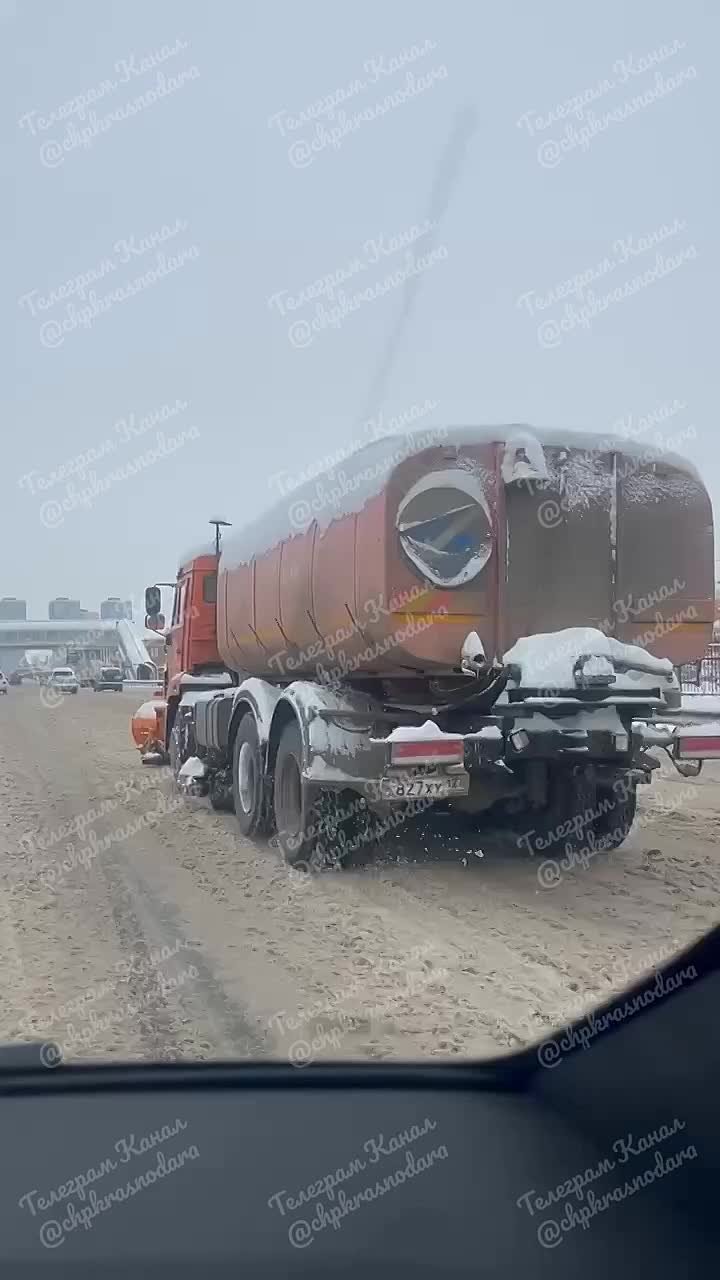 Тем временем кто-то на Ейском шоссе забыл, что выехал чистить дороги от снега...