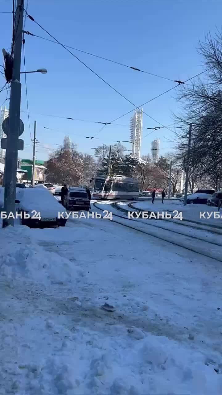 Происшествие случилось возле стадиона «Кубань». Трамваи временно остановились на этом участке.