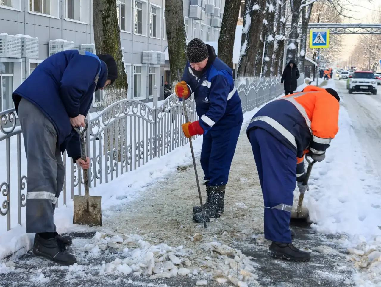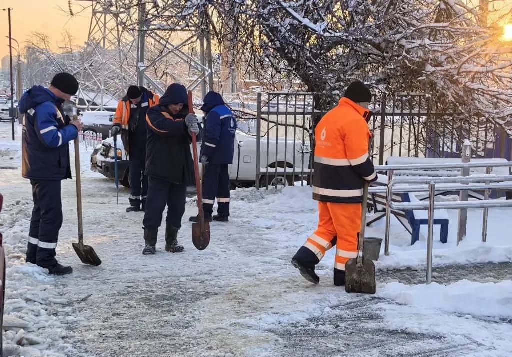 На улицах им. Каляева, им. Атарбекова, им. Герцена и им. Гагарина специалисты предприятия разбили лёд и посыпали песко-соляной смесью тротуары. Особое внимание уделили обработке подходов к центру обслуживания абонентов и пешеходным переходам.
