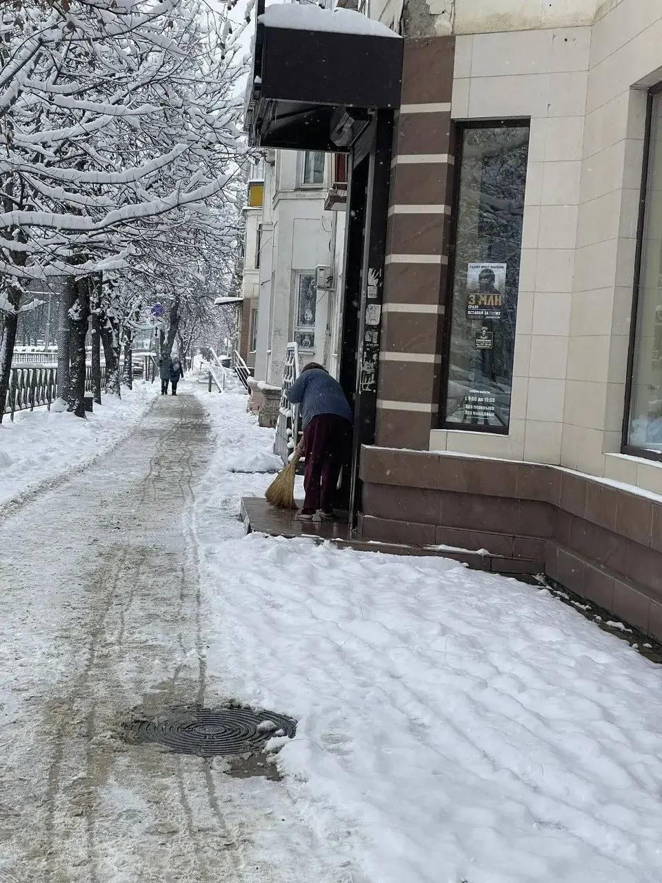 Предприятия потребительской сферы очищают подходы к своим объектам от снега и обрабатывают лестницы и входные группы песко-соляной смесью.