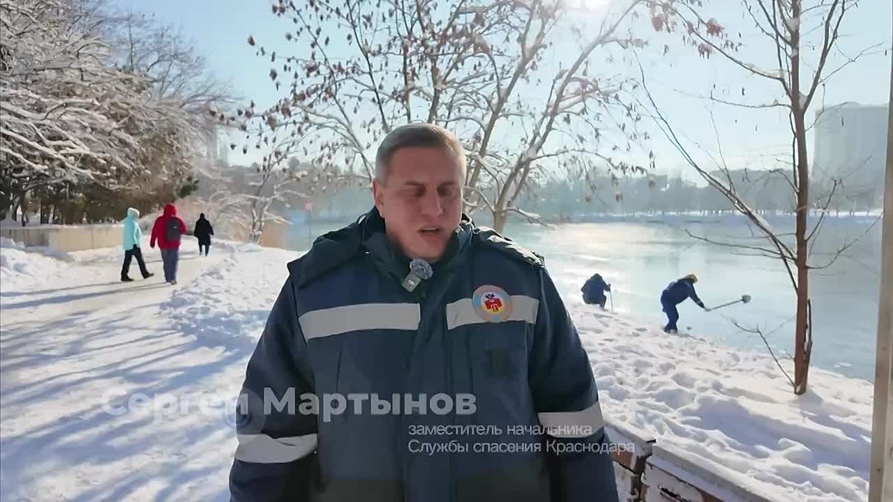 Из-за понижения температуры в краевой столице на водоёмах начал образовываться лёд. Выходить на него опасно. Для предупреждения чрезвычайных ситуаций сотрудники муниципальной Службы спасения мониторят обстановку и выполняют обколку льда.