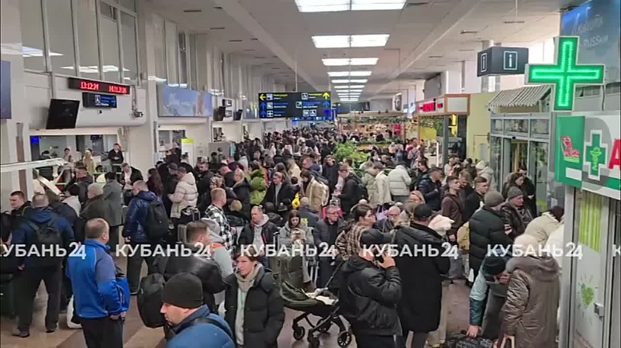 Обстановку в аэропорту Краснодара показала журналистка «Кубань 24».