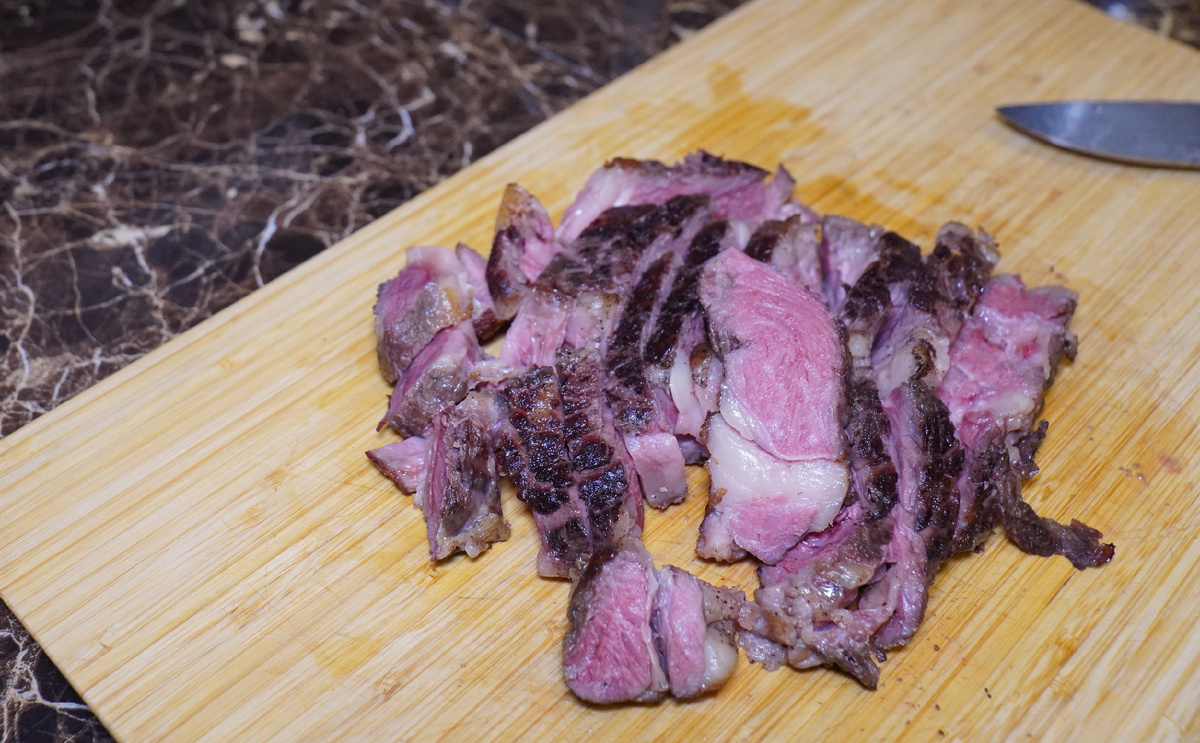 2. Обжарка. На следующий день стейки достаются из вакуума. Их обжаривают на раскаленной сковороде или гриле, устанавливая максимальную температуру. Каждую сторону следует жарить не менее одной минуты, а если есть желание, можно обработать и края стейков по 15-30 секунд.