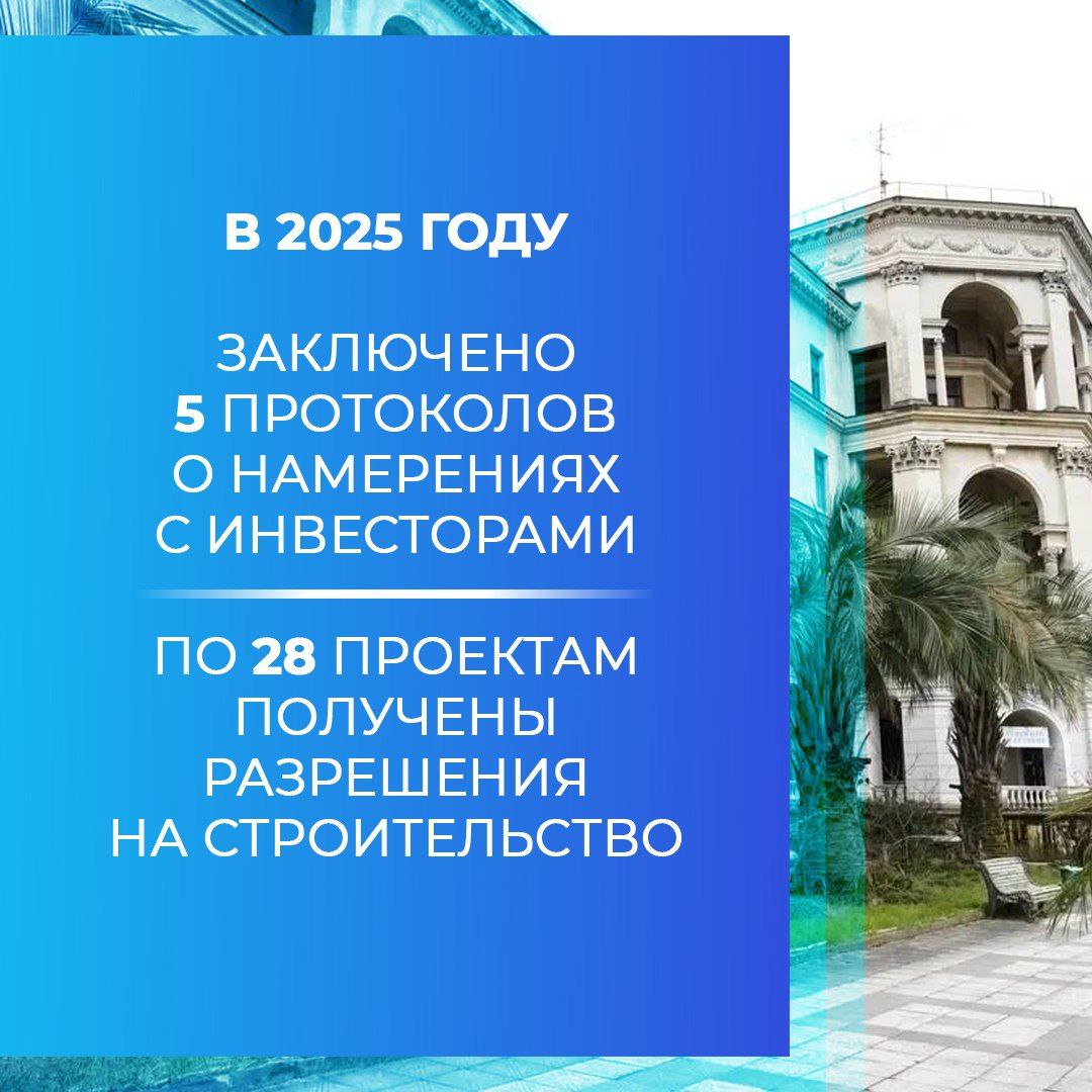 Инвестиционный портфель Сочи включает 60 проектов со сроком реализации с 2025 по 2033 годы. Предусмотрено создание более 25 тысяч новых рабочих мест. Общий объем инвестиций составляет 650,4 млрд рублей. Проекты в санаторно-курортной сфере составляют 73% от общего числа.