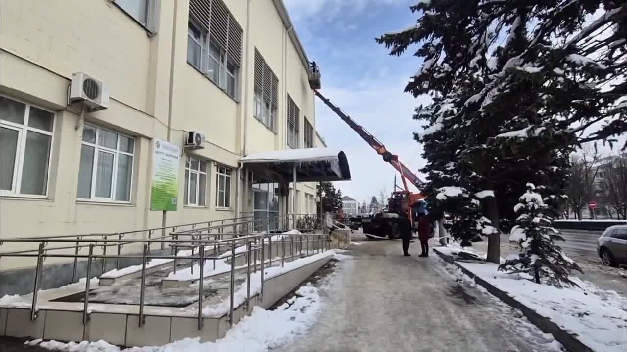 В частности, «ЭлектроСевкавмонтаж» каждый год приглашает специалистов на технике, чтобы сбить сосульки на крыше своего офиса.