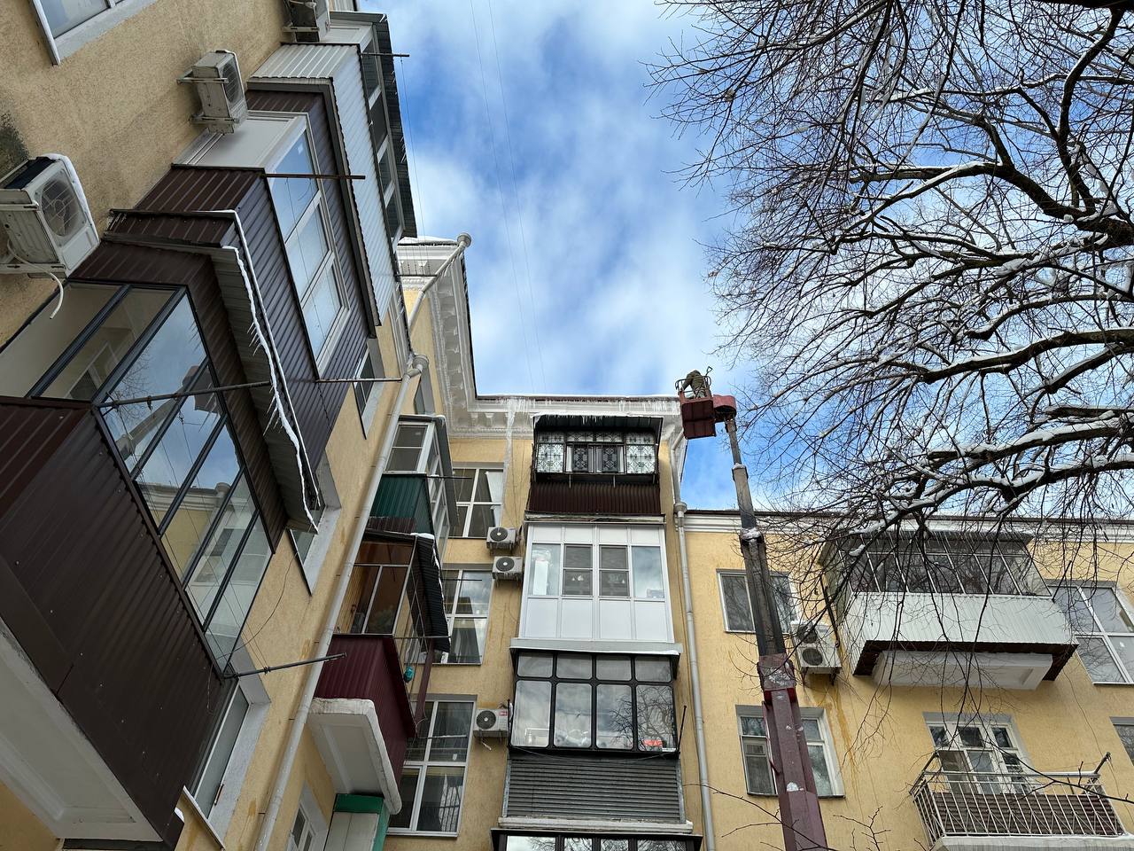 Также пешеходам следует быть внимательнее. Если услышите характерный треск сверху, скорее уходите дальше от стен здания. Будьте осторожны и соблюдайте основные меры безопасности.