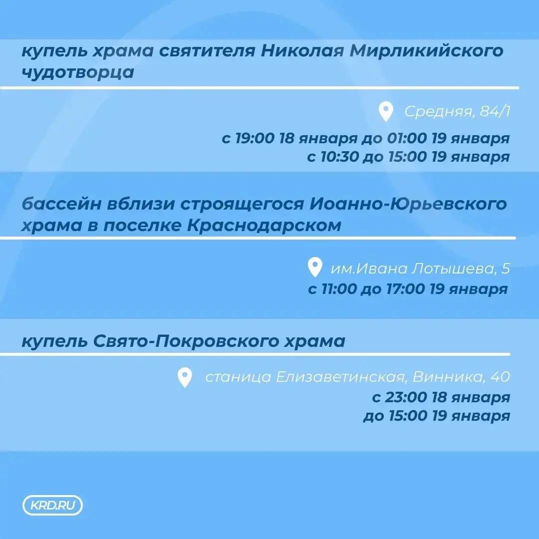 Крещенские купания организуют в 12 местах Краснодара.