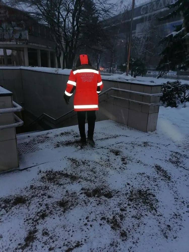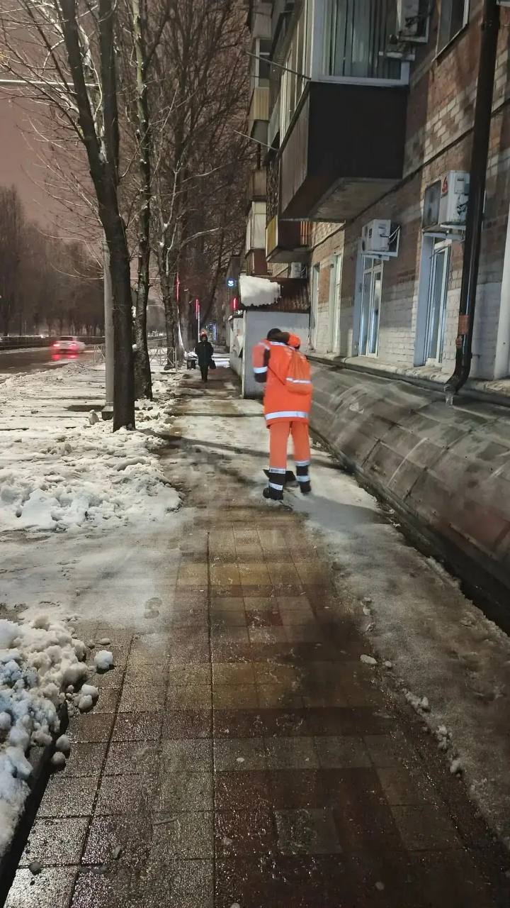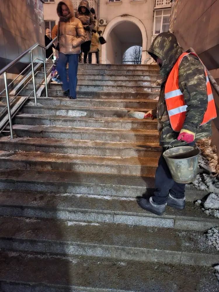 Ночью дорожные службы обрабатывали основные магистрали города и объекты пешеходной инфраструктуры. Особое внимание — состоянию тротуаров, остановок общественного транспорта, подземных и надземных пешеходных переходов.
