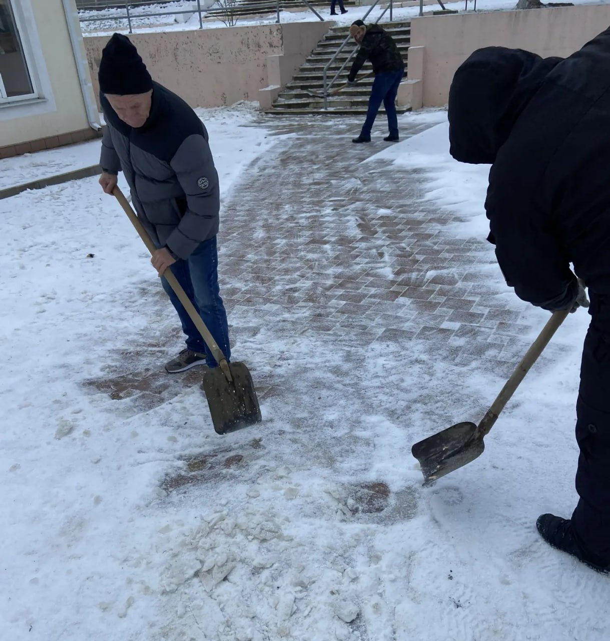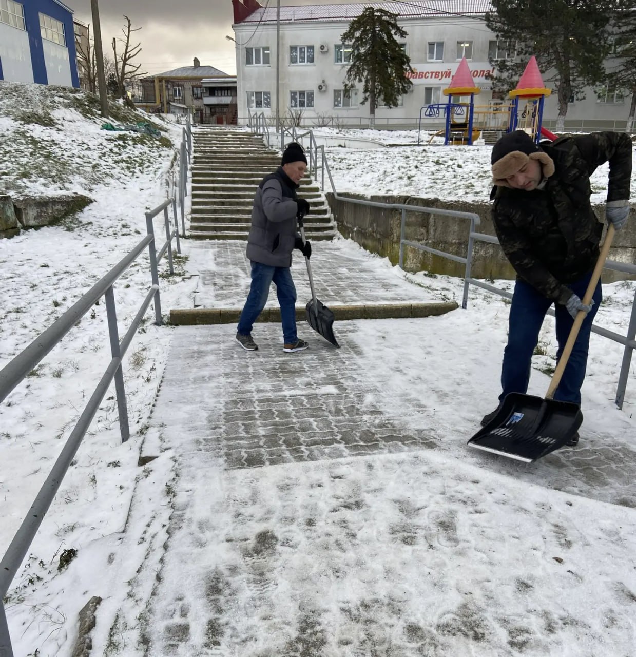 Работники образовательных учреждений убирают снег, расчищают подъездные пути к школам, детским садам, чтобы родители могли подъехать, а дети проходили по очищенным дорожкам без риска поскользнуться.
