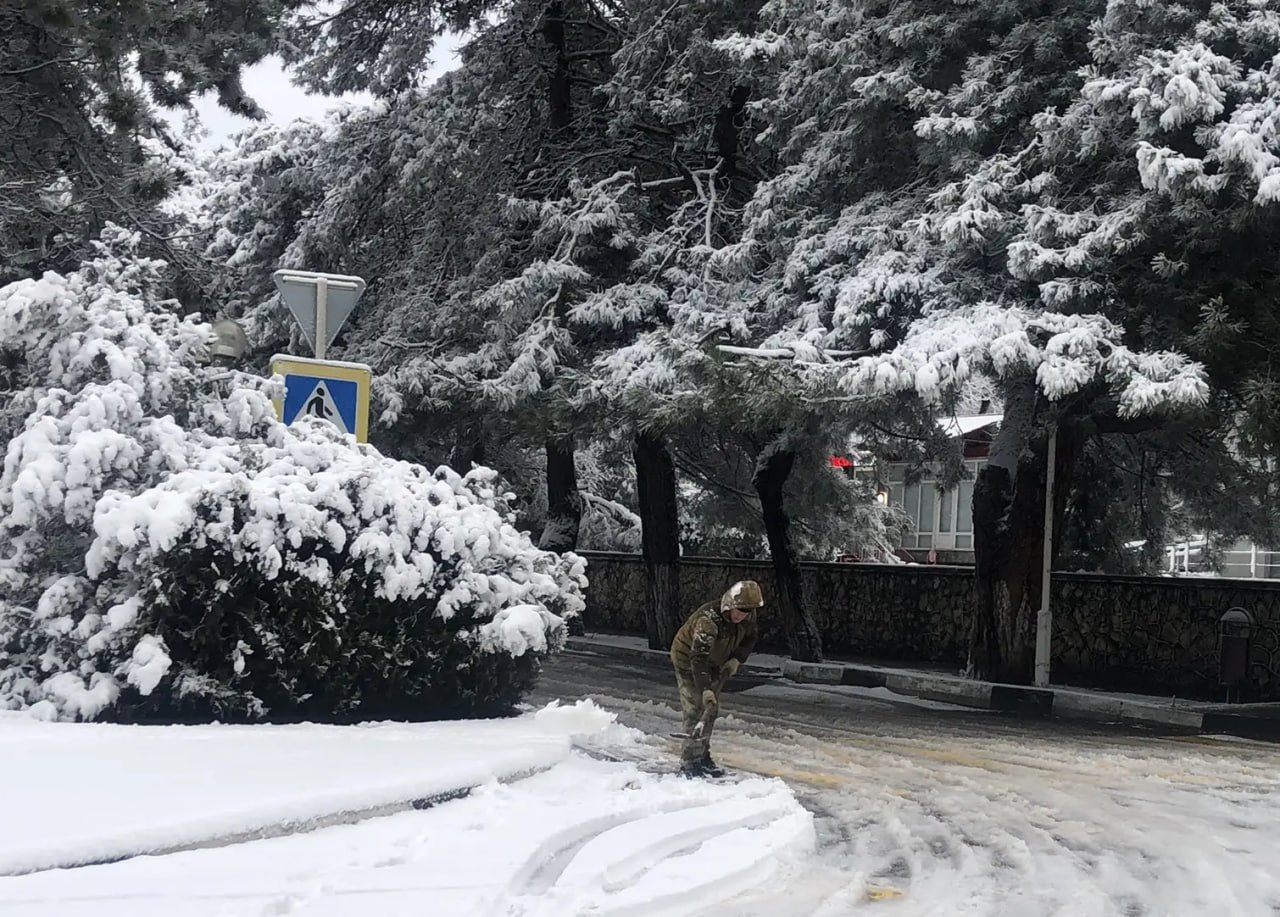 Сотрудники учреждений сёл Дивноморское, Адербиевка, Светлый, Возрождение вышли на уборку тротуаров и подъездных путей. Подключаются жители.