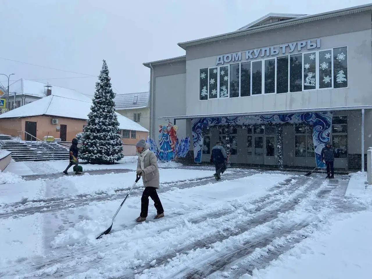 Учреждения культуры города и сельских округов продолжают работы по расчистке снега и приведению в порядок прилегающих территорий. Уборка ведётся на пешеходных подходах, входных группах и общественных пространствах.