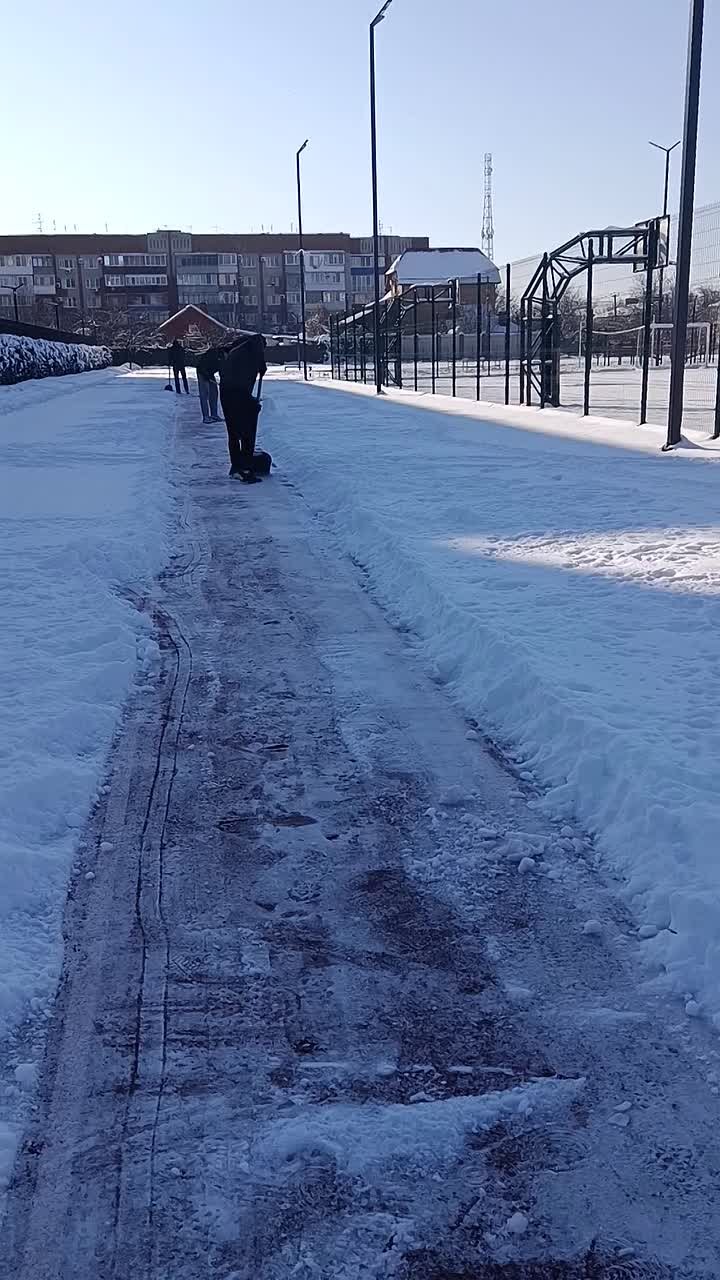 С приходом непогоды краснодарские спортсмены взяли в руки лопаты, чтобы помочь расчистить территорию стадиона и академии «Локомотив-Кубань».