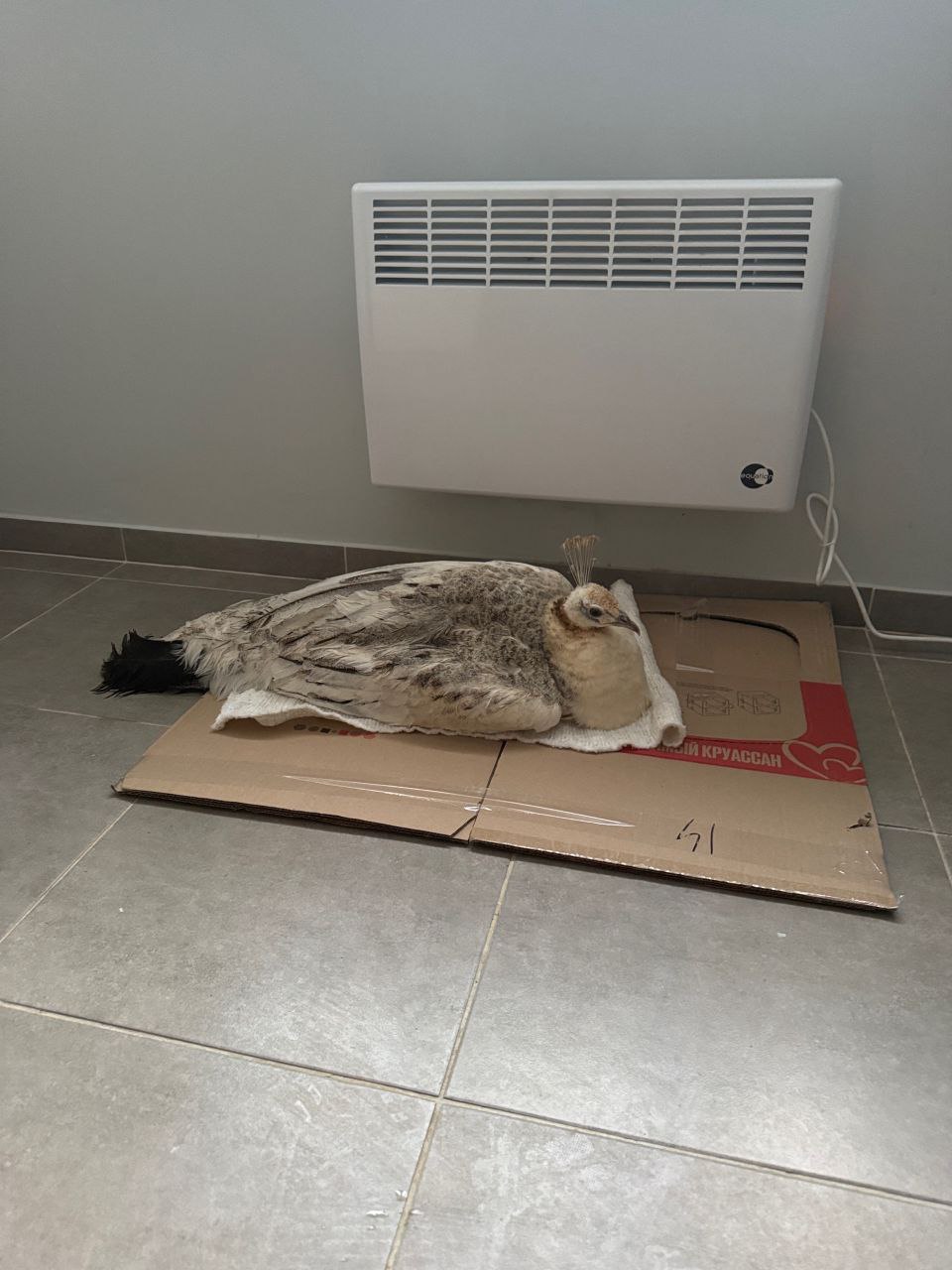 В Краснодаре на остановке нашли замерзающего павлина-альбиноса