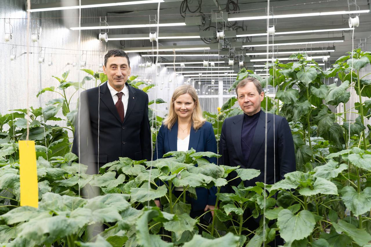 В фитотронно-тепличном комплексе они осмотрели опытные образцы подсолнечника, сои, рапса, льна масличного.