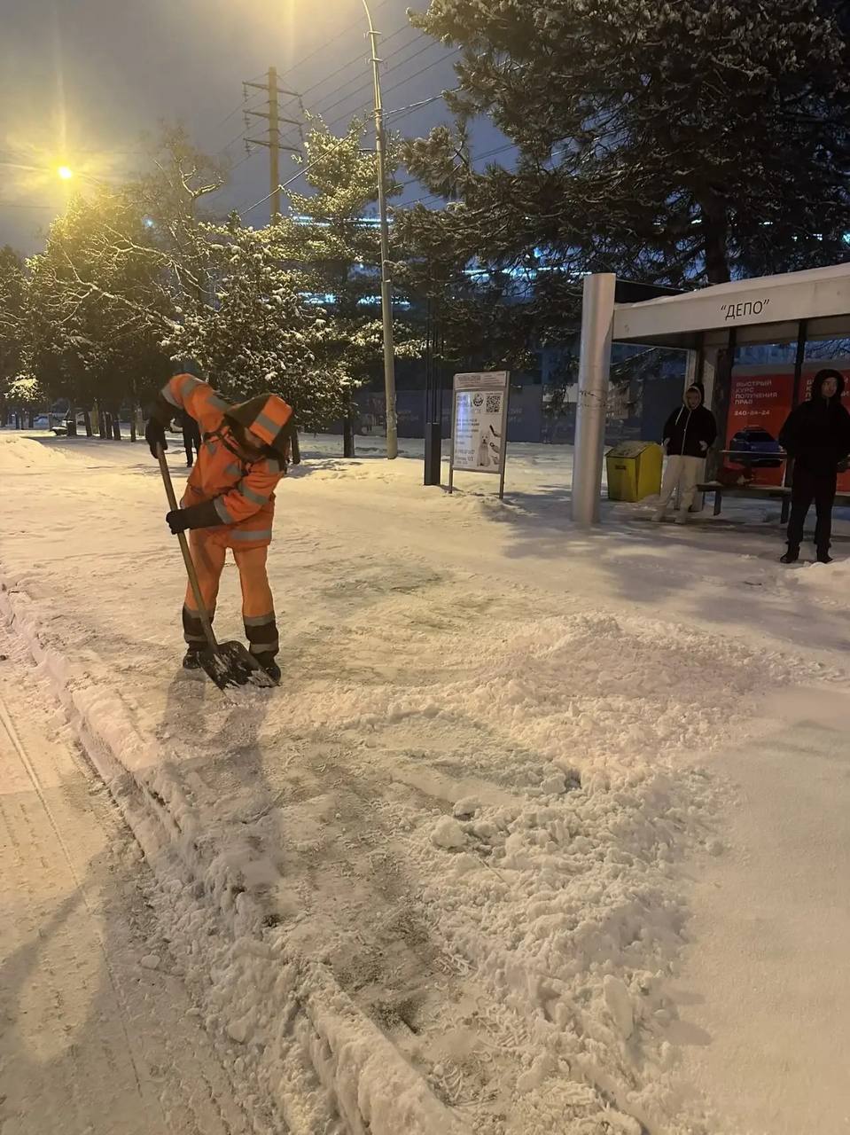 Работают более 600 специалистов и 29 спецмашин для уборки и обработки от гололедицы тротуаров, остановочных комплексов, подземных и надземных пешеходных переходов, внутриквартальных территорий и подходов к школам, детсадам, больницам и поликлиникам.