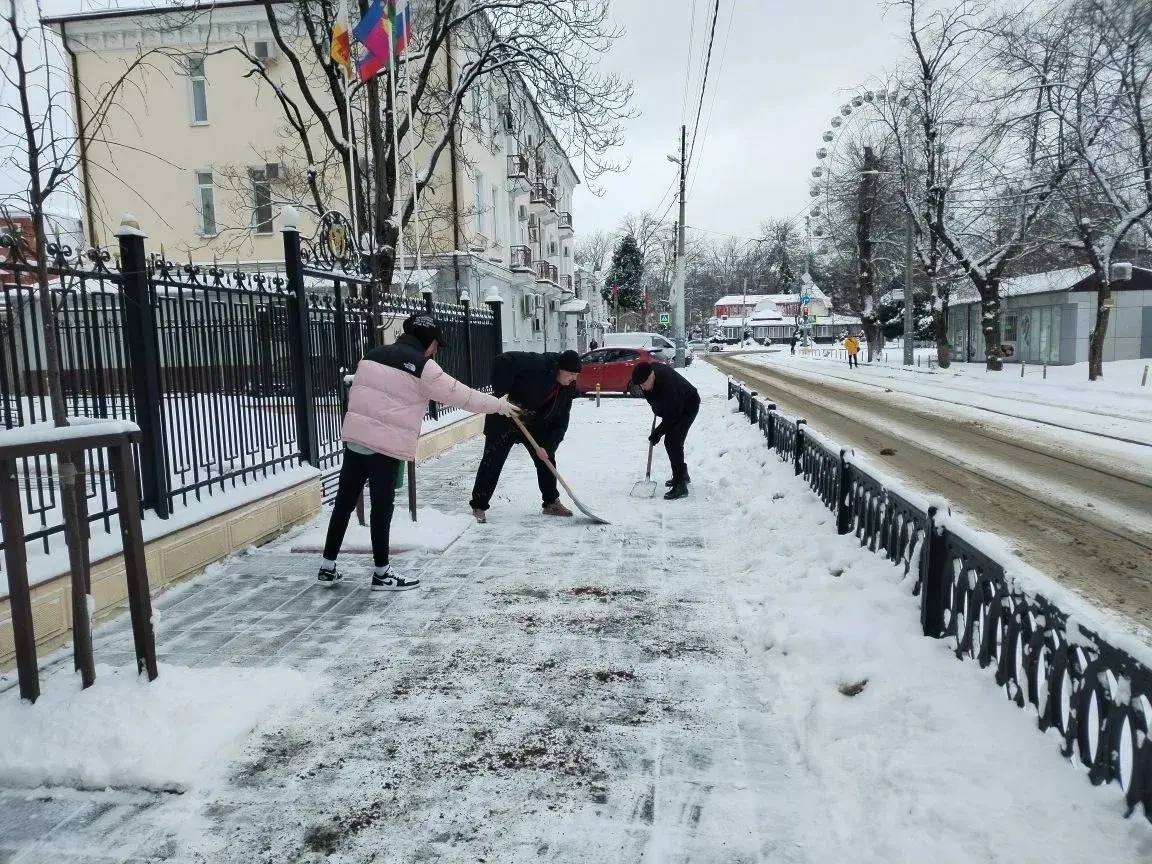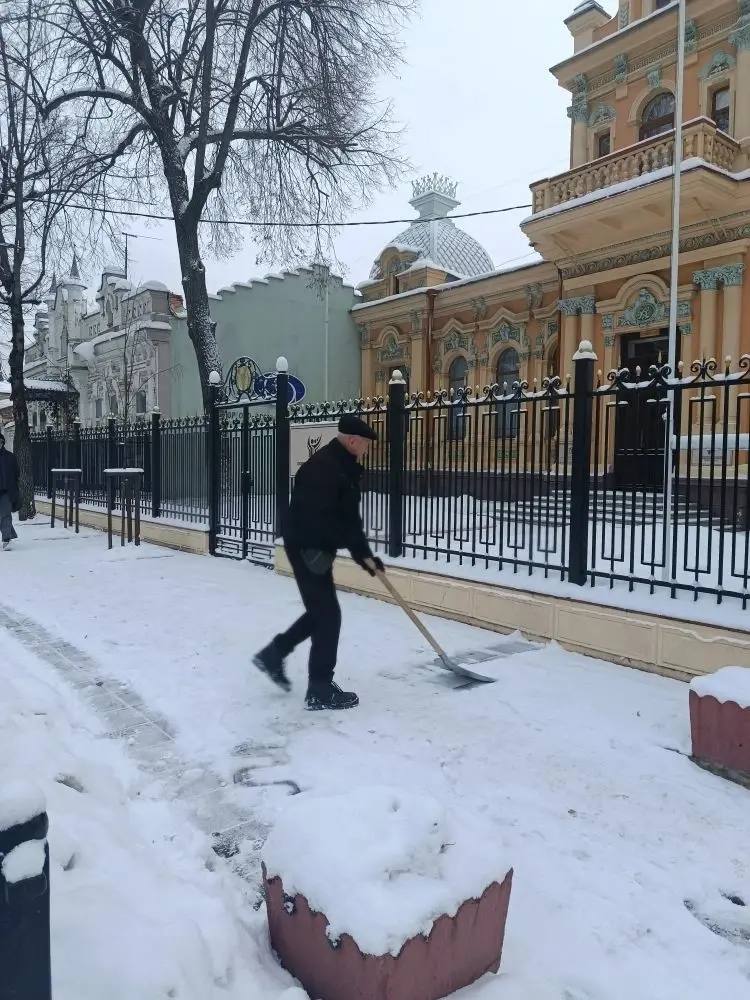 Сотрудники аппарата Общественной палаты дружно вышли на уборку снега и льда вокруг усадьбы купца Василия Рубежанского