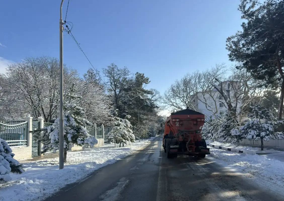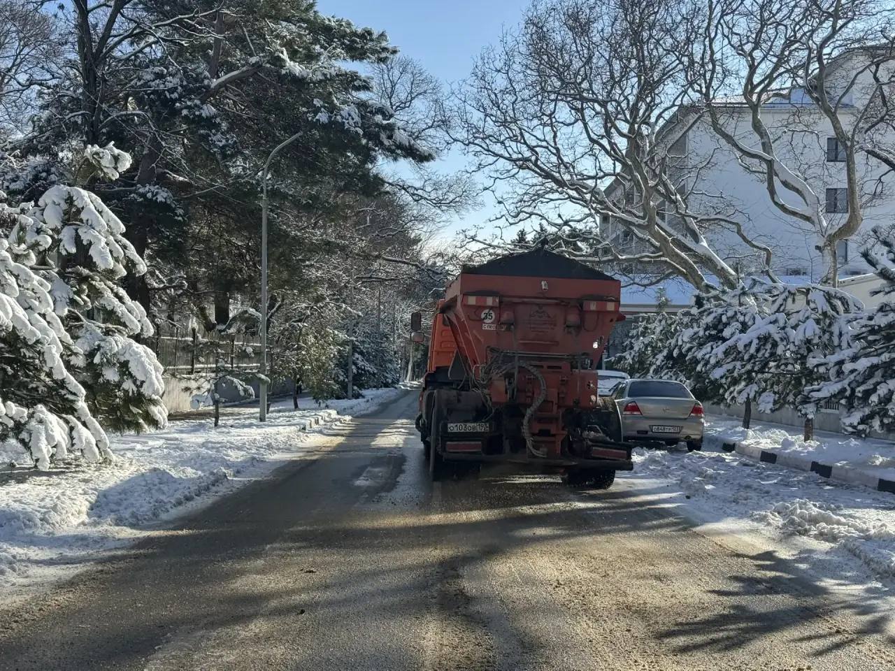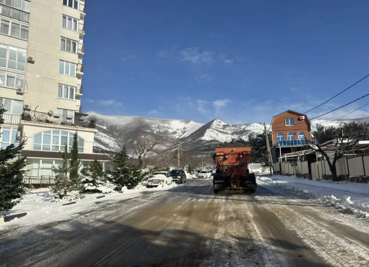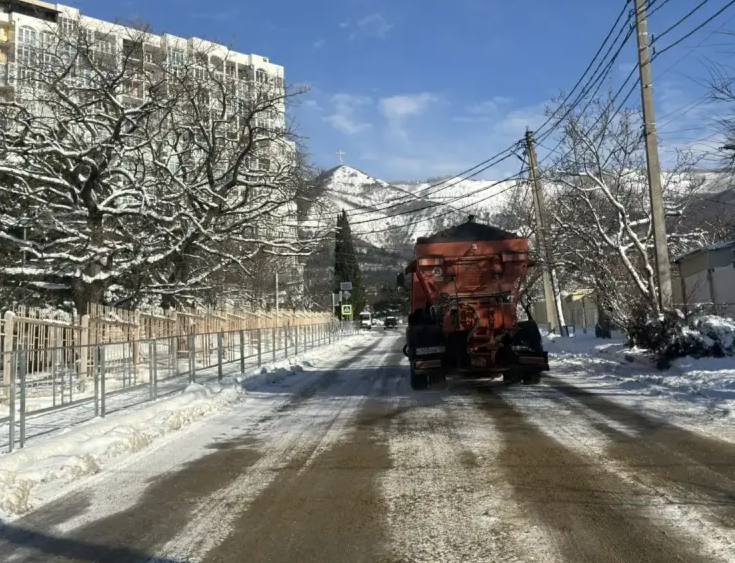 В Геленджике продолжается посыпка дорог противогололедной смесью